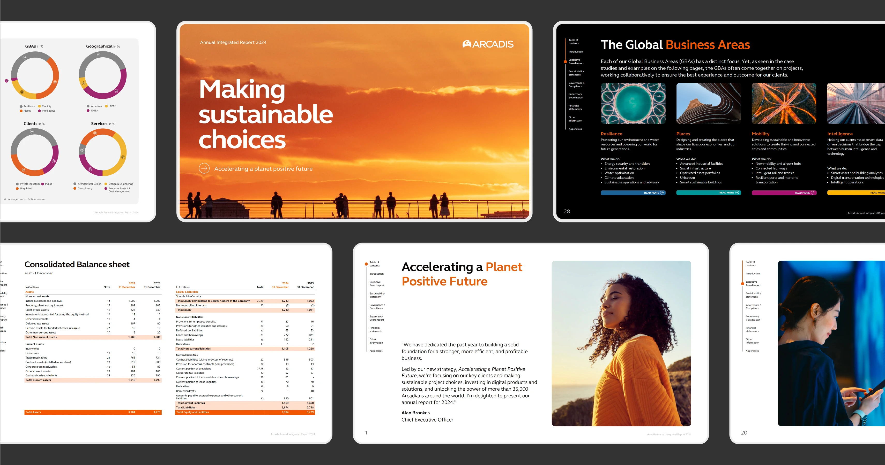 The 2024 edition goes beyond compliance. It shows how Arcadis is translating its ambitions into action: choosing projects that align with sustainability goals, embedding innovation in solutions, and investing in the skills and engagement of more than 35,000 Arcadians worldwide. By presenting financials and impact in an integrated framework, the report creates a clear story of resilience and opportunity.