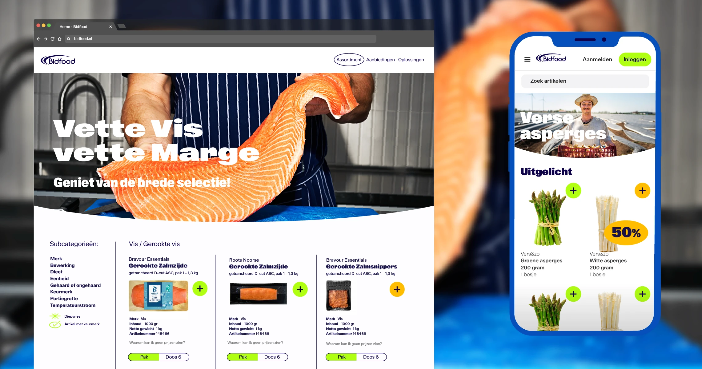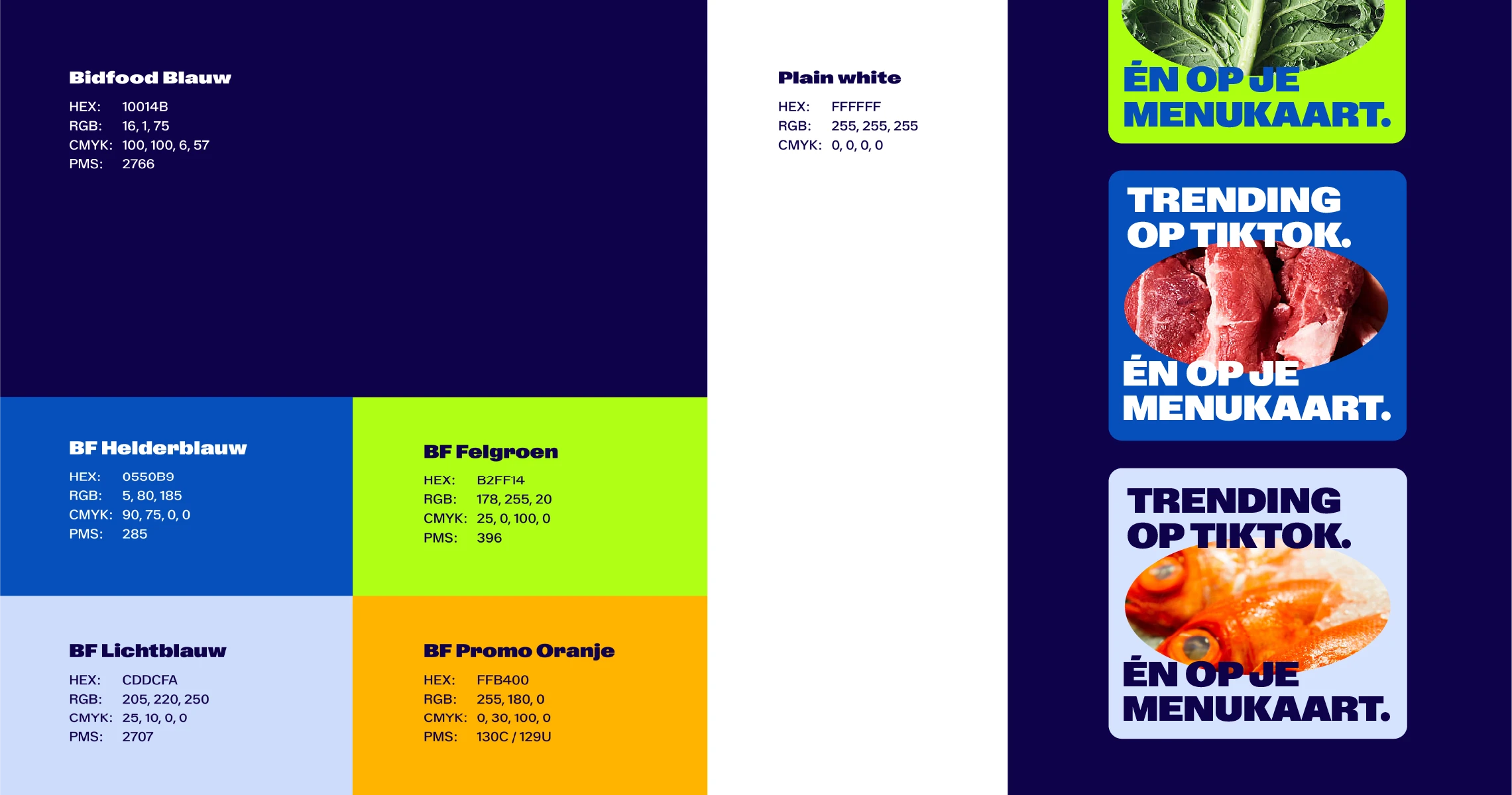 Bidfood is the largest online foodservice wholesaler in the Netherlands, serving more than 25,000 professionals every day. Known for its strong product quality, competitive pricing, food knowhow and reliable delivery, the company is steadily expanding its market position. Not only nationally but also as a growing European player. However, their fragmented brand image stood in the way. In a rapidly digitizing world Bidfood needed an identity that was scalable across hundreds of touchpoints, while maintaining its structure, unity, and the human power of the brand. To sustain their momentum, Bidfood needed a brand identity that honored its roots while matching its ambition for visibility and growth on a larger stage.