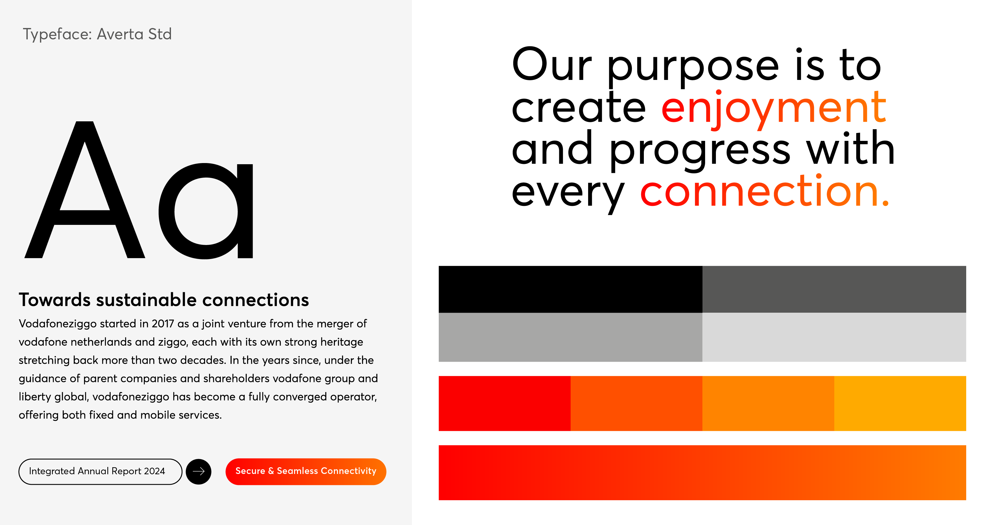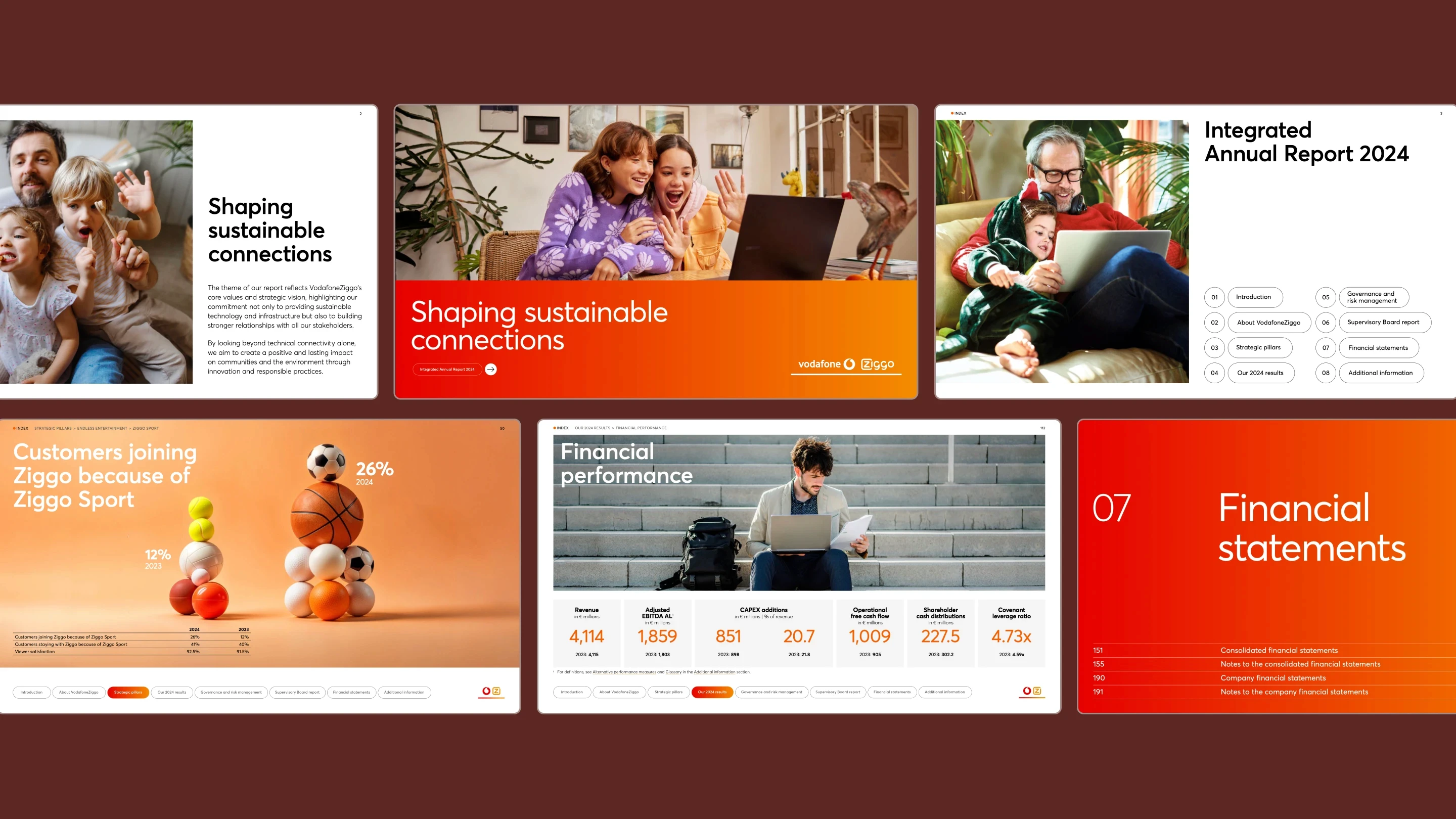The 2022 Integrated Annual Report marks a milestone in that journey. Structured around four strategic pillars -Secure & seamless connectivity, Endless entertainment, Best business solutions, and Smart digital experience - it tells one coherent story of how VodafoneZiggo creates value. Going beyond compliance, it is a narrative of purpose, strategy, and performance coming together, reflecting a company that is both rooted in connection and ready to compete in a constantly evolving market.