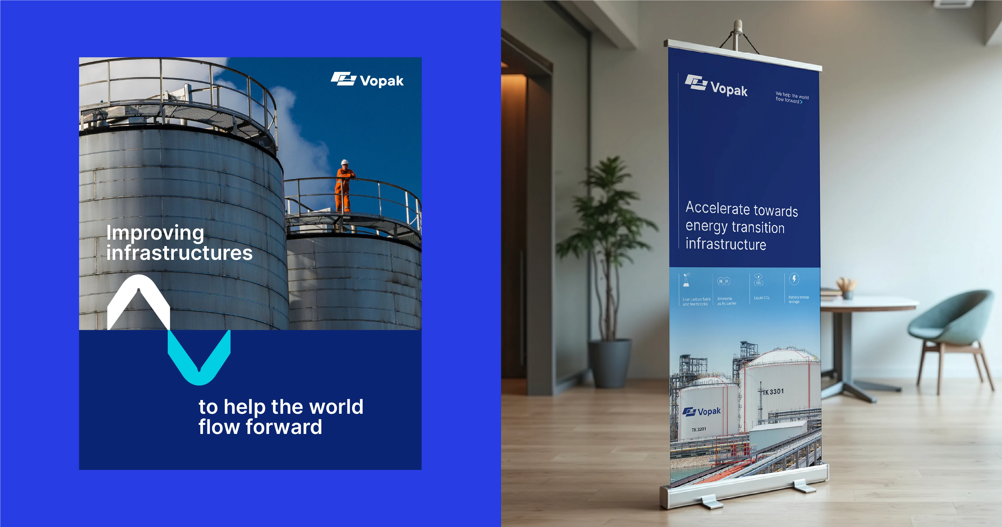 More than a rebrand, this work has become a catalyst for cultural change within Vopak. The Leadership event was organized around the theme of Flow Forward. The new identity embodies a forward-driven, entrepreneurial mindset, encouraging innovation, R&D, and adaptability at every level of the organization. Anchored in the new payoff We help the world flow forward, Vopak now communicates one clear story: a company that honors its heritage, embraces transition, and leads the way toward a sustainable energy economy.